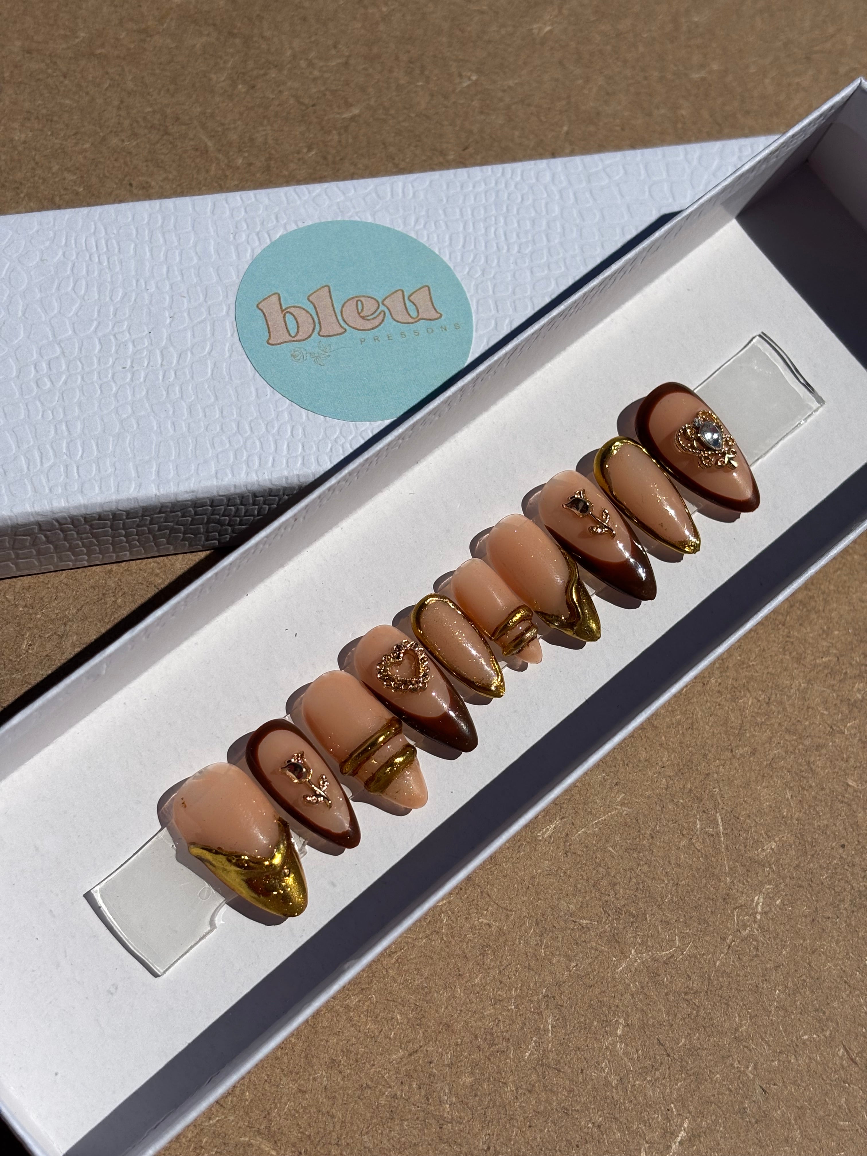 Bleú Press Ons are handmade and made to order. We ensure that every set is designed to perfection and stands out from the rest.